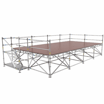 Scaff sistemleri; sahne platformu, LED ekran taşıyıcıları, kamera kuleleri ve ses kuleleri gibi yapısal çözümler için kullanılır.